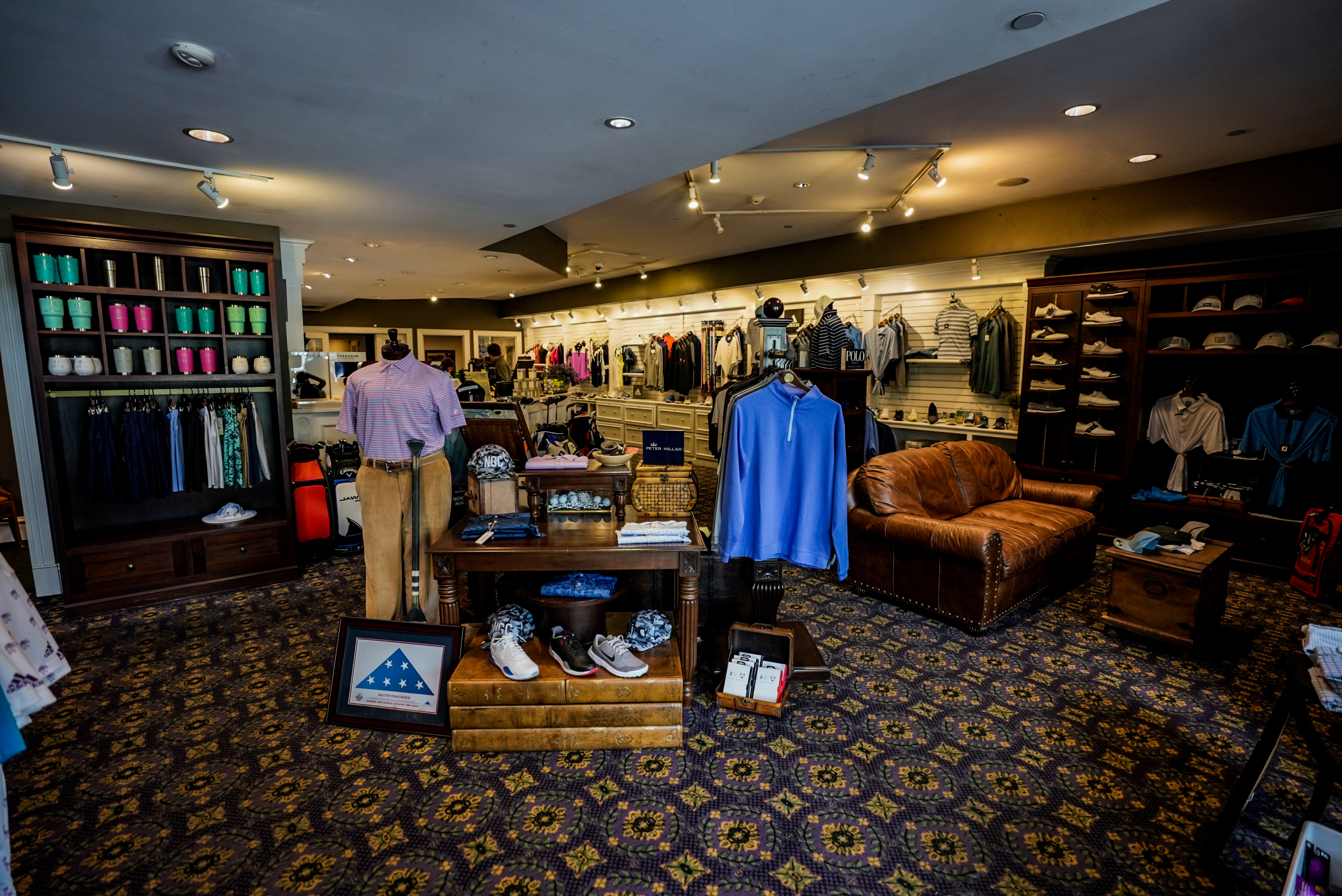 Our well-appointed Golf Shop offers members and guests the best and most current equipment available including logo merchandise and athletic wear, premium rental clubs, golf shoes, accessories and more. The Shop is well stocked with a fantastic selection of quality brands including as Callaway, Titleist, Peter Millar, Greyson, FootJoy, Adidas and much more.